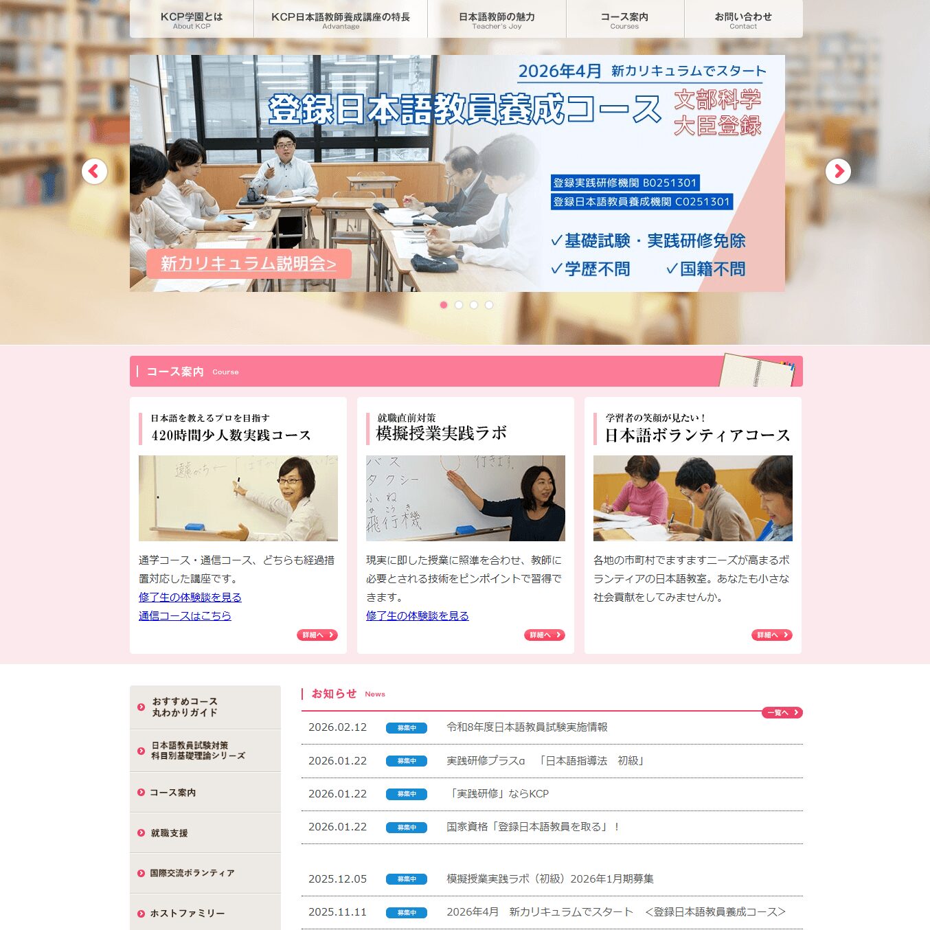 KCPの養成講座はクラス見学・活動参加・教壇実習での授業見学と、たくさんの正規の クラス授業に参加します。 何人もの先生方の授業を見させていただいたおかげで、「日本語教師」という職業のイメージが膨らみました。引用元:https://www.best-shingaku.net/